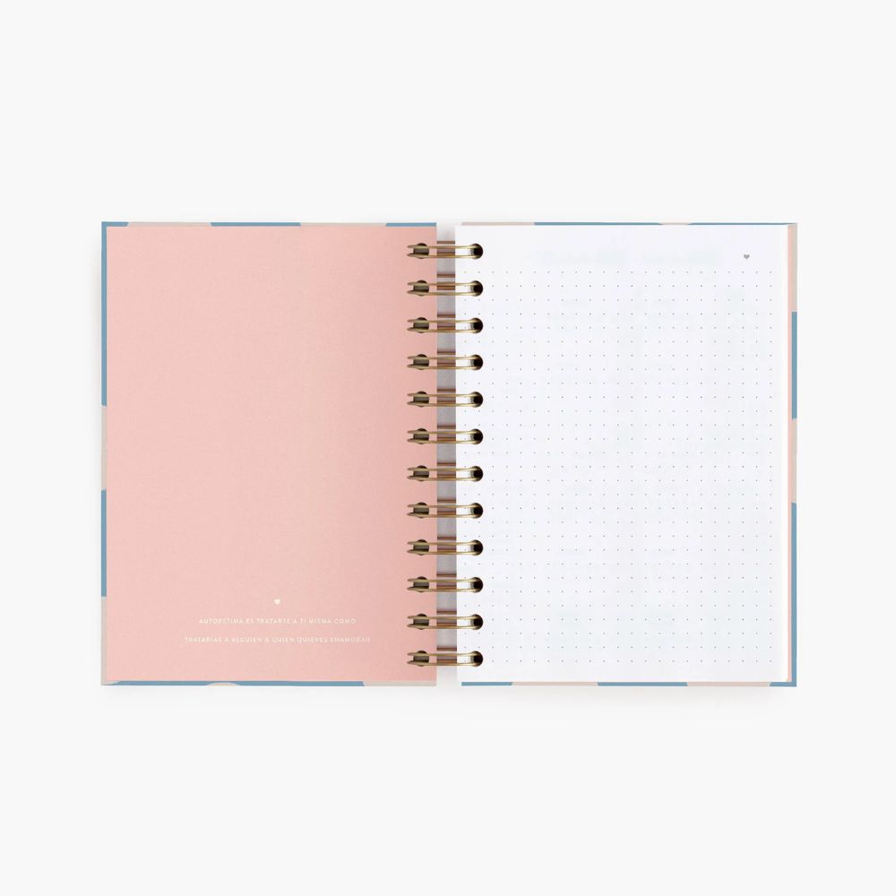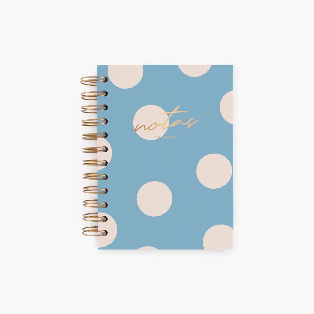 Cuaderno en tamaño mini. Pégale tickets, fotos y recuerdos y se convertirá en tu diario. El interior es de puntitos, la impresión es suave para que puedas utilizarlo para escribir o dibujar.