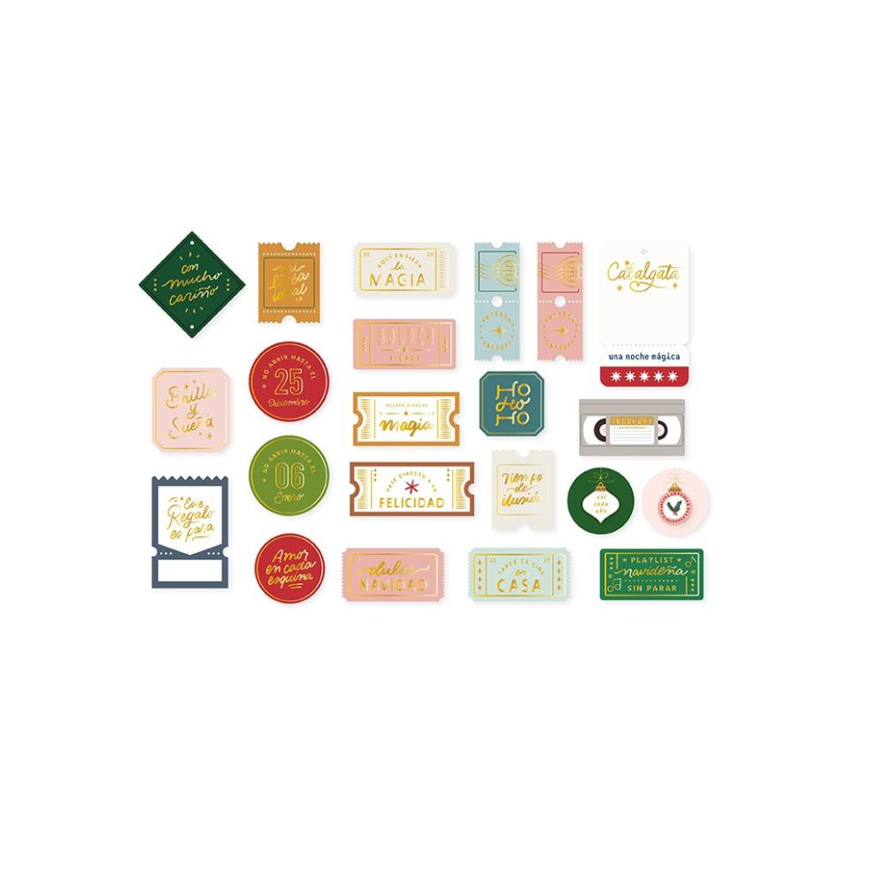 – Cantidad de formas por paquete: 22 divertidas piezas formato ticket con acabado foil.