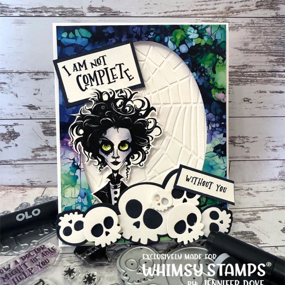 Sumérgete en el encanto caprichoso y gótico de Edward, un alma gentil que podría enseñarnos algo a todos. Nuestro Edward es perfecto para añadir un toque artístico no solo a tarjetas de Halloween, sino también a tarjetas de Navidad, tarjetas de «mejórate», tarjetas de «te extraño» y más. También es un set de sellos ideal para diarios, ATC y técnicas mixtas.