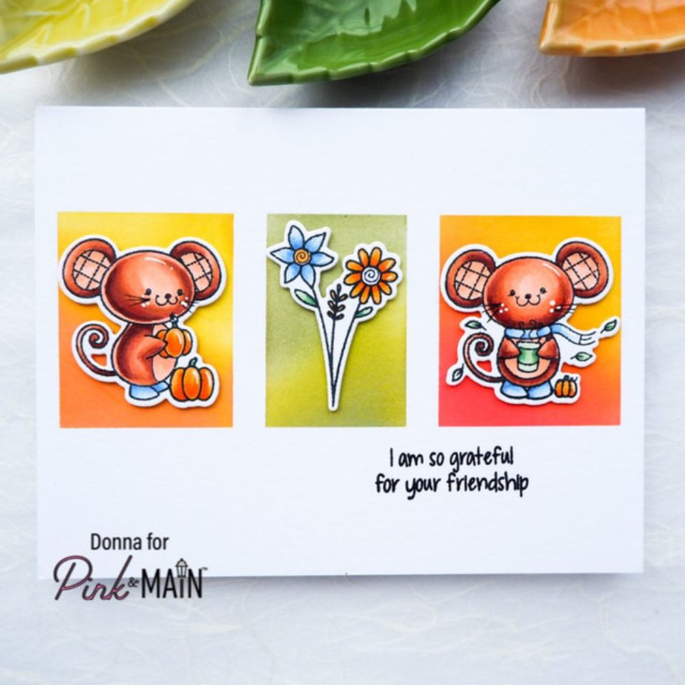 Este set de sellos de 4x 6 pulgadas incluye adorables ratones, ¡listos para tus tarjetas otoñales!