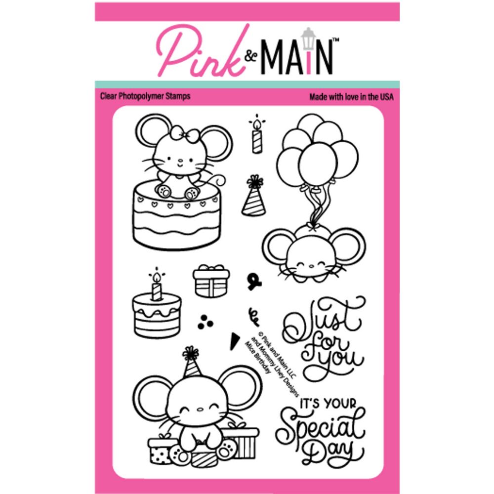 Sello Mice Birthday. Pink and Main