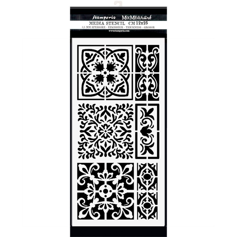 Stencil mix media cm. 12X25 – Azulejos. Stamperia
